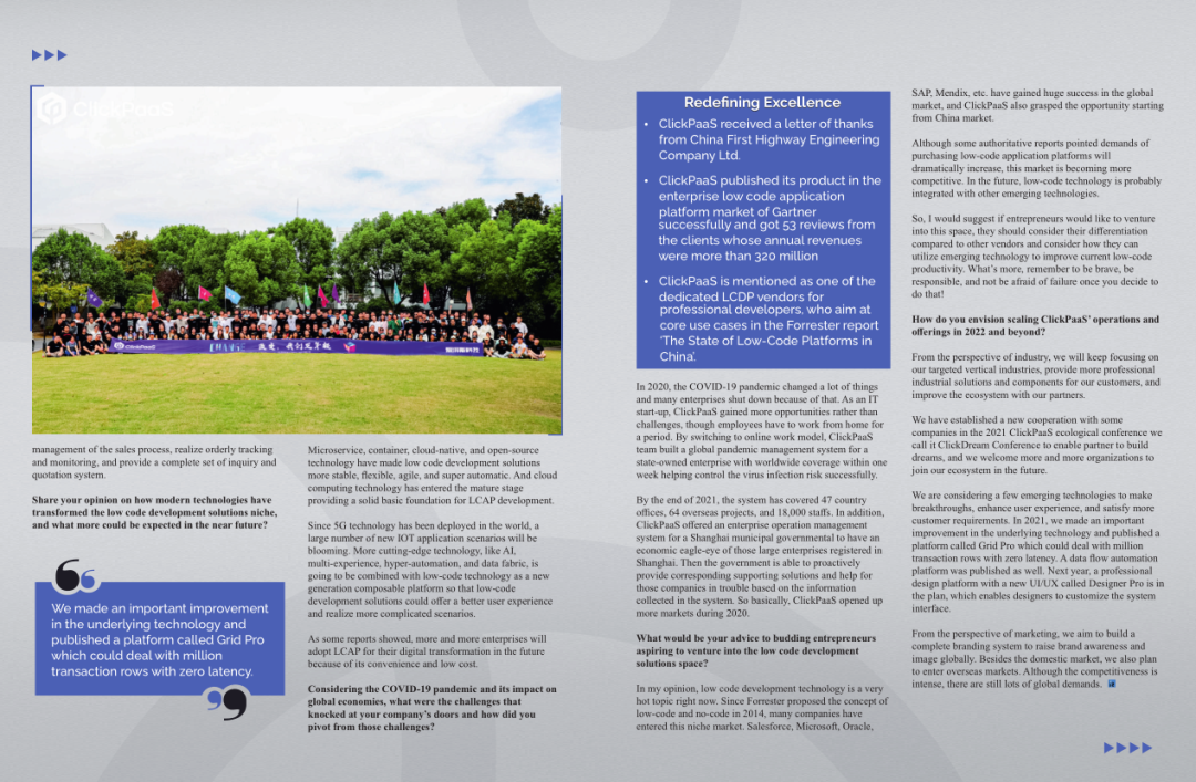 2022年年初,pg电游站入选外媒Insights Success低代码/无代码开发平台 Top10,创始人、CEO胡柏受邀接受专访并荣登封面人物,他与Insights Success的读者分享了pg电游站成立的初心、发展历程、当前的行业发展趋势以及他对公司未来的展望。